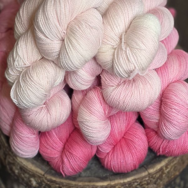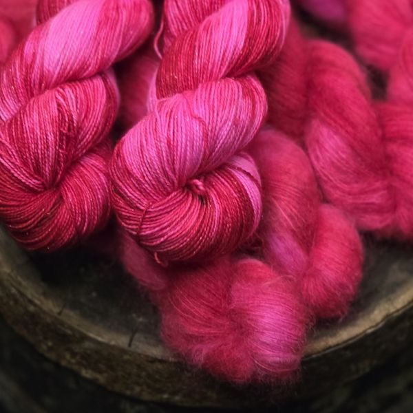Alt garn blir håndfarget av Elisabeth etter at du har bestilt. Når jeg starter fargingen blir ordren merket som “sendt”, men den blir ikke fysisk sendt før garnet er tørt, snurret opp og merket. Denne prosessen kan ta opp til en uke. Er du heldig så har jeg akkurat din farge på lager, og da blir det sendt raskere. Jeg har ca 2 fargedager i uken, resten av uken går til kontorarbeid og oppskriftskriving.